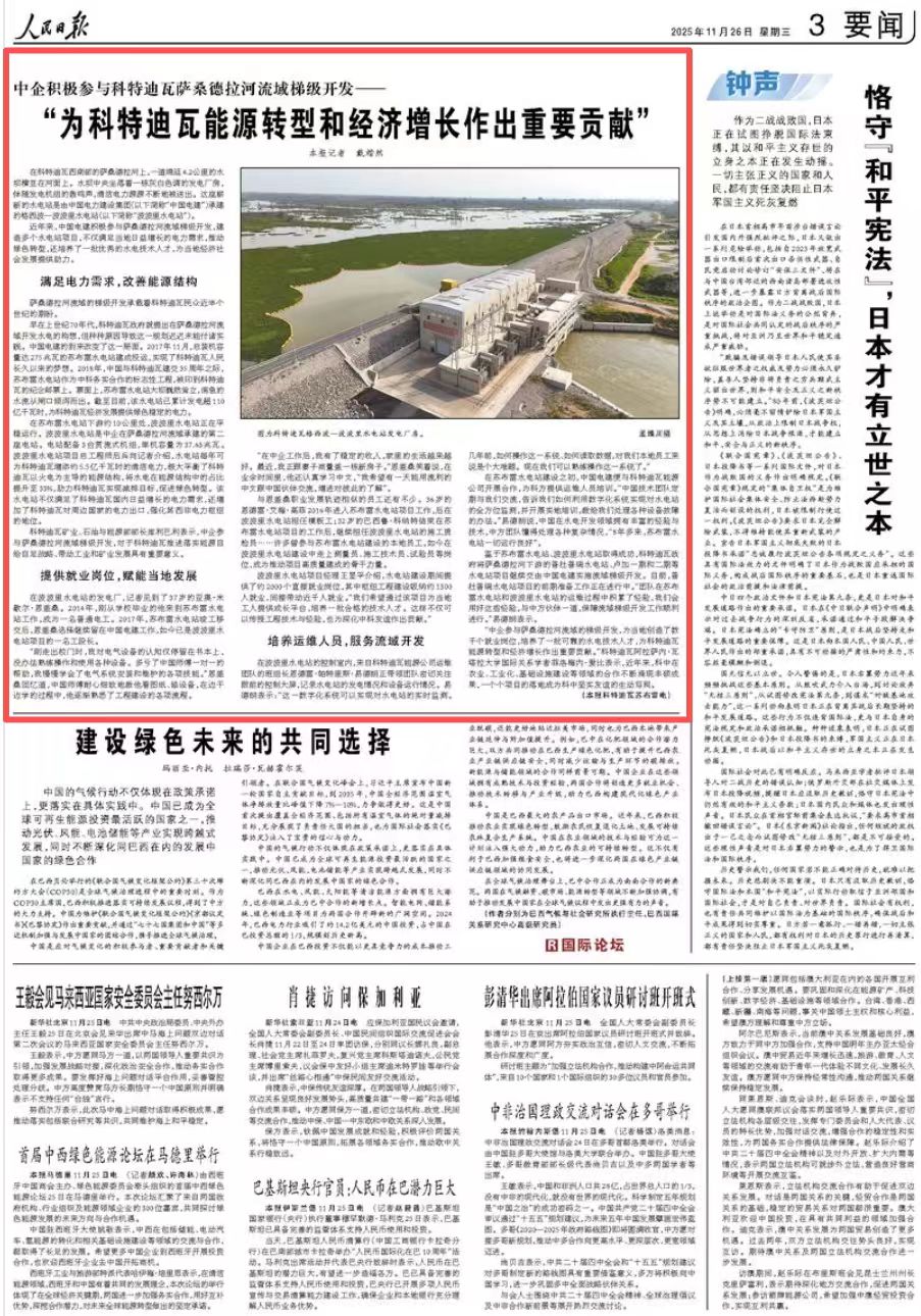 在科特迪瓦西南部的萨桑德拉河上,一道绵延4.2公里的水坝横亘在河面上。水坝中央坐落着一栋灰白色调的发电厂房,伴随发电机组的轰鸣声,清洁电力源源不断地被送出。这座崭新的水电站是由中国电力建设集团(以下简称“中国电建”)承建的格西波—波波里水电站(以下简称“波波里水电站”)。 近年来,中国电建积极参与萨桑德拉河流域梯级开发,建造多个水电站项目,不仅满足当地日益增长的电力需求,推动绿色转型,还培养了一批优秀的水电技术人才,为当地经济社会发展提供助力。 满足电力需求,改善能源结构 萨桑德拉河流域的梯级开发承载着科特迪瓦民众近半个世纪的期盼。 早在上世纪70年代,科特迪瓦政府就提出在萨桑德拉河流域开发水电的构想,但种种原因导致这一规划迟迟未能付诸实践。中国电建的到来改变了这一局面。2017年11月,总装机容量达275兆瓦的苏布雷水电站建成投运,实现了科特迪瓦人民长久以来的梦想。2018年,中国与科特迪瓦建交35周年之际,苏布雷水电站作为中科务实合作的标志性工程,被印到科特迪瓦的纪念邮票上。票面上,苏布雷水电站大坝巍然耸立,湍急的水流从闸口倾泻而出。截至目前,该水电站已累计发电超110亿千瓦时,为科特迪瓦经济发展提供绿色稳定的电力。 在苏布雷水电站下游约10公里处,波波里水电站正在平稳运行。波波里水电站是中企在萨桑德拉河流域承建的第二座电站。电站配备3台贯流式机组,单机容量为37.63兆瓦。波波里水电站项目总工程师后兵向记者介绍,水电站每年可为科特迪瓦增添约5.5亿千瓦时的清洁电力,极大平衡了科特迪瓦以火电为主导的能源结构,将水电在能源结构中的占比提升至33%,助力科特迪瓦实现减排目标,促进绿色转型。该水电站不仅满足了科特迪瓦国内日益增长的电力需求,还增加了科特迪瓦对周边国家的电力出口,强化其西非电力枢纽的地位。 科特迪瓦矿业、石油与能源部部长库利巴利表示,中企参与萨桑德拉河流域梯级开发,对于科特迪瓦推进落实能源自给自足战略、带动工业和矿业发展具有重要意义。 提供就业岗位,赋能当地发展 在波波里水电站的发电厂,记者见到了37岁的亚奥·米歇尔·恩盖桑。2014年,刚从学校毕业的他来到苏布雷水电站工作,成为一名普通电工。2017年,苏布雷水电站竣工移交后,恩盖桑选择继续留在中国电建工作,如今已是波波里水电站项目的一名工段长。 “刚走出校门时,我对电气设备的认知仅停留在书本上,没办法熟练操作和使用各种设备。多亏了中国师傅一对一的帮助,我慢慢学会了电气系统安装和维护的各项技能。”恩盖桑回忆道,中国师傅耐心细致地教他看图纸、修设备,在边干边学的过程中,他逐渐熟悉了工程建设的各项流程。 “在中企工作后,我有了稳定的收入,家里的生活越来越好。最近,我正跟妻子商量盖一栋新房子。”恩盖桑笑着说,在业余时间里,他还认真学习中文,“我希望有一天能用流利的中文跟中国伙伴交流,增进对彼此的了解”。 与恩盖桑职业发展轨迹相似的员工还有不少。36岁的恩德雷·艾梅·高菲2016年进入苏布雷水电站项目工作,后在波波里水电站担任模板工;32岁的巴西鲁·科纳特结束在苏布雷水电站项目的工作后,继续担任波波里水电站的施工质检员……许多曾参与苏布雷水电站建设的本地员工,如今在波波里水电站建设中走上测量员、施工技术员、试验员等岗位,成为推动项目高质量建成的骨干力量。 波波里水电站项目经理王显平介绍,水电站建设期间提供了约2000个直接就业岗位,其中枢纽工程建设吸纳约1300人就业,间接带动近千人就业。“我们希望通过该项目为当地工人提供成长平台,培养一批合格的技术人才。这样不仅可以传授工程技术与经验,也为深化中科友谊作出贡献。” 培养运维人员,服务流域开发 在波波里水电站的控制室内,来自科特迪瓦能源公司运维团队的班组长恩德雷·帕特里斯·易德朗正带领团队密切关注眼前的控制大屏,记录水电站的发电情况和设备运行情况。易德朗表示:“这一数字化系统可以实现对水电站的实时监测。几年前,如何操作这一系统、如何读取数据,对我们本地员工来说是个大难题。现在我们可以熟练操作这一系统了。” 在苏布雷水电站建设之初,中国电建便与科特迪瓦能源公司开展合作,为科方提供运维人员培训。“中国技术团队定期与我们交流,告诉我们如何利用数字化系统实现对水电站的全方位监测,并开展实地培训,教给我们处理各种设备故障的办法。”易德朗说,中国在水电开发领域拥有丰富的经验与技术,中方团队懂得处理各种复杂情况,“8年多来,苏布雷水电站一切运行良好”。 鉴于苏布雷水电站、波波里水电站取得成功,科特迪瓦政府将萨桑德拉河下游的普杜普瑞水电站、卢加一期和二期等水电站项目继续交由中国电建实施流域梯级开发。目前,普杜普瑞水电站项目的前期准备工作正在进行中。“团队在苏布雷水电站和波波里水电站的运维过程中积累了经验,我们会用好这些经验,与中方伙伴一道,保障流域梯级开发工作顺利进行。”易德朗表示。 “中企参与萨桑德拉河流域的梯级开发,为当地创造了数千个就业岗位,培养了一批可靠的水电技术人才,为科特迪瓦能源转型和经济增长作出重要贡献。”科特迪瓦阿拉萨内·瓦塔拉大学国际关系学者菲洛梅
