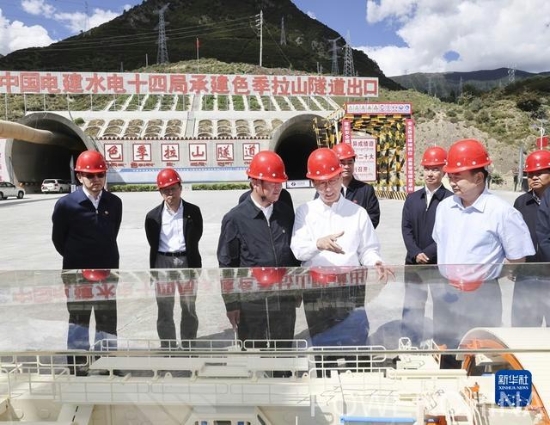 7月14日至15日,中共中央政治局常委、国务院副总理韩正在西藏林芝、青海玉树调研。韩正强调,要坚持以习近平新时代中国特色社会主义思想为指导,深入贯彻新发展理念,坚定不移走生态优先、绿色发展之路,扎实推进重大工程建设和生态保护,不断推动高质量发展取得新成效。 在西藏林芝,韩正来到中国电建所属水电十四局承建的川藏铁路色季拉山隧道出口工点,结合展板了解工程建设总体情况,深入隧道施工掌子面实地考察施工情况,到中国电建承建的尼洋河砂石加工场了解绿色砂石生产及节能环保工艺。
