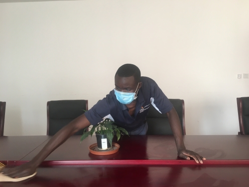 布莱恩原本是水电五局赞比亚区域管理总部的一名园丁兼食堂早餐帮厨,疫情期间,由于工作需要他转岗为一名清洁工,不辞辛劳地负责区域部营区范围内所有公共区域的卫生清洁与消毒等工作。 甘愿做一颗螺丝钉 布莱恩从2015年开始进入中国电建工作,成为了水电五局赞比亚区域管理总部的园丁。无论是在之前从租住的小院子,还是从2018年4月份搬入到这个自建的营区,他都坚持用自己的双手,给区域部的员工打造一个干净、舒适的生活与工作环境,为区域部营造了一个别样的花园式环境。 自搬入自建的营区后,布莱恩的工作量增加了不止一倍,而他也从未有过任何的抱怨,他勤勤恳恳地干着自己的工作,随处可见他的身影。刚建成的营区满院子光秃秃的,经过了一个来月的努力,满院子的黄土地上铺满了草皮,周围种上了月季、桃树、木瓜树、苹果树、香蕉树等各种树苗,花果齐全,满院子也有了生机,给人耳目一新的感觉。 赞比亚的旱季,天黑得要更早些,天亮得也要更晚些。2019年,赞比亚治安似乎不是那么让人心安,早班的厨娘也提出了抗议,早上要赶到办事处,也就是她们需要早上5点半就要从家出发。那时候天还很黑,月亮还高高挂在空中,微弱的月光下,厨娘对自己的安危也格外担忧。为了解决这个问题,想着在不扩招的情况下,只有让布莱恩来兼任早班帮厨的工作。 原本以为他也会推脱,毕竟早起可是一件很磨人的事情,没想到当问到他是否愿意每天提早两个小时来上班的时候,他毫不犹豫的答应了。 他说:“我愿意,只要有需要,我都可以的。” 经过了合格的健康检查,他也成为了食堂的一名帮厨,成为了每天第一个来上班的工人。他每天都能够按时抵达,从未迟到,并且食堂的工作做得也胜过那些常年在厨房工作的厨娘们。他不仅早上把食堂全面清洁、消毒后,还可以帮助厨师做一些熬稀饭、剁骨头的工作,并且他的工作速度也相对要快很多,做事不拖拉,厨师对他也是甚是喜欢。 白天他虽然是一名园丁,可是他的工作也不仅限于处理区域部的那些花花草草。由于除了司机,也就只有他一个男性雇员了,所以很多的体力活,大家也都习惯性的找他。 “布莱恩,帮我搬一桶水到办公室,谢谢!” “布莱恩,厕所堵了,麻烦看看能不能通一下?” “布莱恩,狗圈有些脏了,麻烦洗一下。” “布莱恩,麻烦把烧烤炉搬到操场,并且把火烧好。” 布莱恩外表不突出、性格不张扬,但是他始终坚守着一份责任,在平凡的工作岗位上展现了他敬业、务实的工作精神,并积极发扬“螺丝钉”精神,实属难得的优秀雇员。 守护电建“大家庭” 布莱恩租住在卢萨卡周边的一个叫Mtendere East的中低层居民集中居住的社区,离区域部有近15公里左右。他每天需要骑着自己的自行车至少半个小时才能到达公司。之所以租住那么远,是因为那边的房价相对要便宜很多,即使是这样,房租也占据了他工资收入的一半。他无比珍惜这份工作,他说:“家里的妻子只能在家带孩子,如果我没有了这份工作,一家人吃住都无法解决。” 2020年3月份赞比亚首例新冠肺炎确诊后,区域部升级了应急响应,采取封闭式管理模式,减少人员流动带来的传染风险。布莱恩由于他杰出的表现,被选为了留守的员工。自此,他一直留宿在区域部的职工宿舍,也不用每天那么辛苦的骑行那么远。这一住就是四个多月了。期间,司机都轮流回家休了年休假,而他因为工作的无替代性,他也没有强行要求回家,并一直坚守自己的工作岗位。他说:“我如果回去了,这么大的营地的卫生就没有专人负责了,回去一次加上隔离,至少二十天没有办法工作。目前疫情也很严重,我就暂时不回去 ,等疫情缓解后,我再回去休假吧。” 为了缓解他对家人的思念之情,区域部工会也安排工作人员送他回家探亲,与家人相见。虽然,只是短暂的会面,也让他感觉特别温暖。在去他家之前,只知道他从家到区域部需要骑自行车大概30分钟左右,此次他的回家之路,才真正感受到他所骑行的道路跟想象中完全不一样。有一段路跟过山车似的,将近45度角的大斜坡,以及从大路同向他家的那段土路,简直无法想象,他每天是如何摸黑骑行的。庆幸他每天平安抵达了。 一天夜里11点多接到农场周洪的求助电话,他从下凯富峡项目送菜返回卢萨卡途中,车子坏在了半路,停在路边无法启动了。警察以违章停车为由,把司机带走了,留周洪一人在无法启动的冷藏车上。 这个时候,无法把车开回来,也不能让周洪一人留在车里。为了能够把周洪轮换回来,只能找布莱恩商量,希望他去看守故障冷藏车,等待第二天天亮后再去警察局解决问题,并找人维修车辆。 5月的夜晚,阵阵寒风入骨。跑到当地雇员的宿舍门口,把布莱恩从睡梦中叫了起来,并简单的跟他讲述了一下需要他去协助办理的事情。原以为他会很不情愿,没曾想,他二话不说,立马起床穿衣,睡眼朦胧地披着外套、抱着被子从宿舍出来了,嘴里还念叨着:“我来了,来了。” “一定在车里待着,注意安全,现在疫情期间,不要与外界任何人接触。注意保护好自己。”宋总耐心的嘱咐他。他频频点头,漆黑的夜里,仅看到他两只大眼睛眨巴眨巴的,像两颗闪亮的星星,流露出无比真诚的感情。 看着他裹着被子坐在车上的样子,着实有些不忍,可是,这大晚上的也只有他是最佳人选。 在他的眼中,区域部的中方人员不仅仅是他的上司,也是他的亲