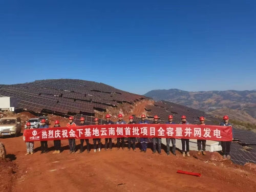 12月24日,由水电十四局设计承建的富民县罗免老干山光伏项目实现全容量并网,标志着我国“十四五”规划的9大清洁能源基地之一,金沙江下游清洁能源基地首批风光基地项目全容量并网发电。 罗免老干山光伏电站项目位于云南省昆明市富民县,海拔2000米到2200米,址区总体地势较为起伏,地形坡度一般5°-40°,局部较陡。进场施工后,面对施工条件差、节点工期紧等严峻形势,水电十四局项目团队以“开工即决战、起步即冲刺”的奋斗姿态带领项目团队攻坚克难、抢抓进度,最终以安全零事故、质量零缺陷、设备零故障的标准顺利实现全容量并网发电等多个重大节点任务目标,又一次创造了山地集中式光伏“当季开工,当季全容量并网发电”的水电十四局“能”速度。 项目全容量并网后,年均发电量可达36亿千瓦时,每年减少二氧化碳排放284万吨,可有效促进西部地区经济社会发展、全面绿色转型,助力我国新型能源体系建设。项目的投产,标志着金沙江下游“风光水储”一体化国家级清洁能源示范基地(云南侧)整体建设向前迈进了关键性的一步,也为今年迎峰度冬能源保障增添了一份光伏新力量。 金沙江下游“风光水储”一体化国家级清洁能源示范基地位于金沙江下游干流未开发利用的干热河谷地段,是全国首批1亿千瓦大型风电光伏基地之一,被国家能源局纳入第一批大型风电光伏基地建设清单,与溪洛渡、向家坝、乌东德、白鹤滩4座巨型水电站(装机容量共计4646万千瓦)共同形成全球最大的沿江清洁能源走廊。 全容量并网发电 金沙江下游清洁能源基地首批风光基地项目 |