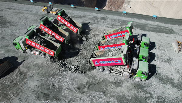 12月31日,随着最后一车坝料运输到位并完成推平、压实,同类型世界最高混凝土面板堆石坝——拉哇水电站大坝宣告全线填筑到顶。拉哇水电站各参建单位代表,数百名一线建设者齐聚施工现场,共同见证这一激动人心的“决胜时刻”! 由中国电建承建的拉哇水电站是国家“十四五”重点规划的九大清洁能源基地之一——金沙江上游清洁能源基地的重要组成部分,电站坝高242.5米,坝顶高程2709米,填筑总量约1600万方,为目前同类型世界最高混凝土面板堆石坝。同时,拉哇水电站坝址位于高原深切峡谷内,具有填筑强度大、施工工期短、地震烈度高、质量控制难、交叉作业影响大、料场供料困难多等特点,大坝填筑施工难度大、技术要求极高。 自2023年6月16日,第一车石料进入基坑并完成填筑以来,拉哇项目部广大职工昼夜轮番上阵,以坚韧的意志拼搏奋战、坚守一线,攻克了一个又一个难关,终于在28个月的紧张工期内,按期完成大坝全线填筑到顶这一宏伟目标! 在大坝工程建设过程当中,项目部团队超前策划、精心组织,并始终坚持科技创新引领工程建设,逐步构建起由无人碾压、智能填筑、智能物料、智能爆破、智能灌浆等模块共同组成的大坝智能建造系统,切实提升填筑质效。为达成节能减排目标,同时适应高原地区作业需求,项目部开创性地在高原寒冷地区大规模使用新能源自卸车运输填筑坝料,先后共投入近百台新能源自卸车,建立三座新能源充换电站,实现坝料装、运、卸全过程零排放,为中国水利水电行业在高原寒冷地区筑造更多标志性工程开拓了“降本增效、低碳环保”新路径。 这一世界级工程填筑到顶的重大胜利,充分彰显了中国电建建设者的智慧与力量,以及攻坚克难、矢志奋斗的坚守与担当。在项目团队不断进步、成长的同时,拉哇水电站大坝的雄姿也已崭露头角。后续,拉哇项目部将锚定远大目标、坚定奋斗信念,站在项目建设的新起点上,继往开来、乘胜逐北,全力向后续面板浇筑、灌浆工程等各项目标发起冲刺,谱写“中国混凝土面板堆石坝第一品牌”建设新篇章,为国家早日实现“双碳”目标和川藏地区经济社会发展贡献更大力量。 |