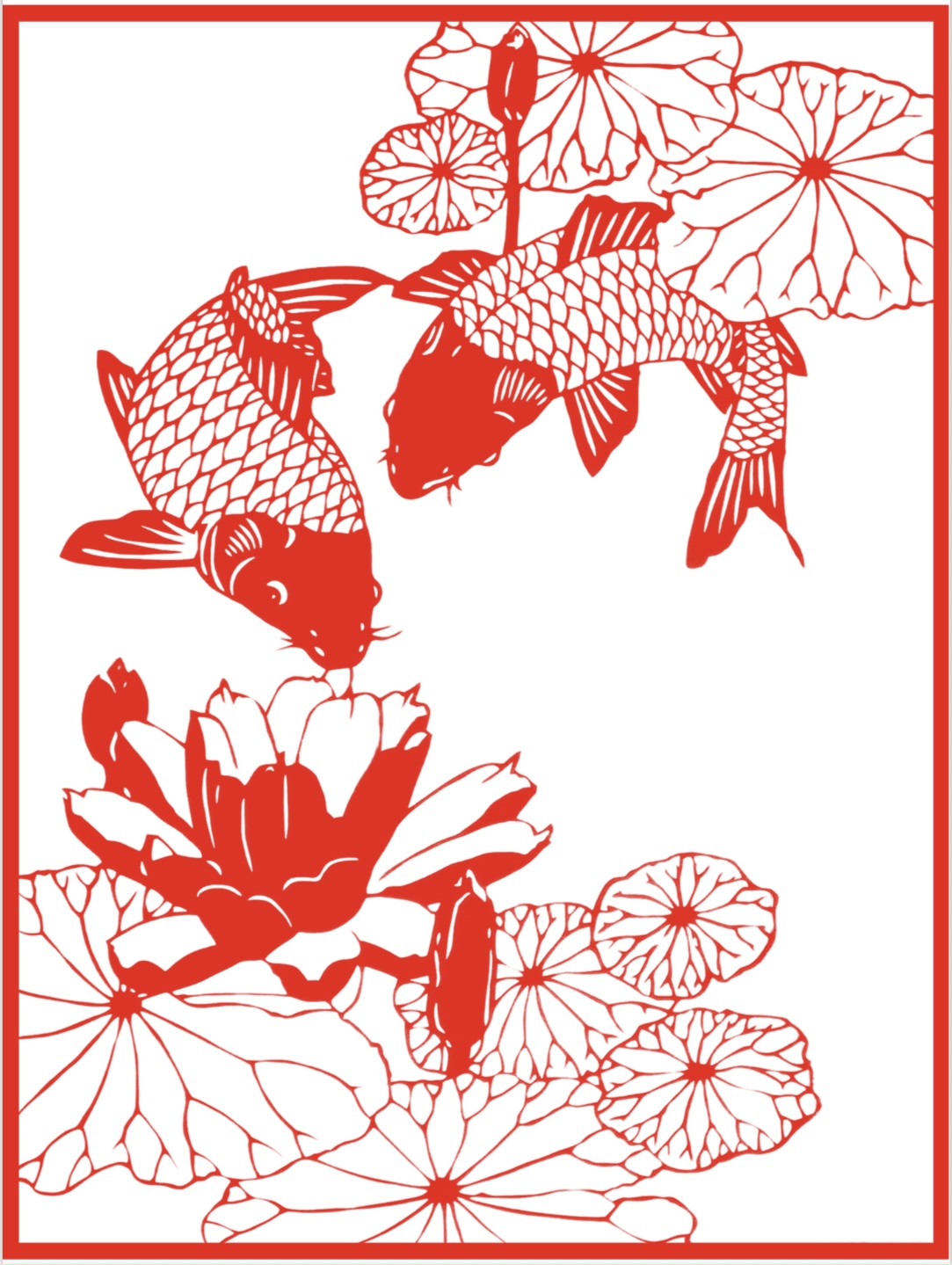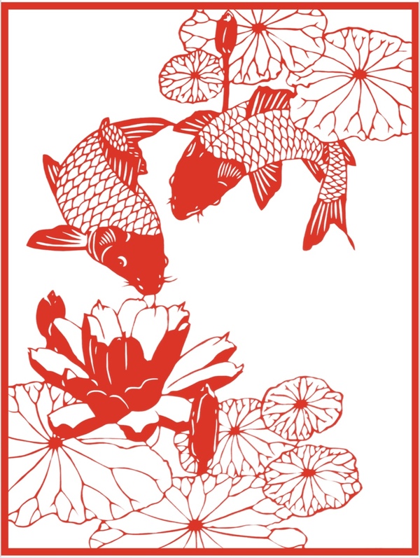 【剪纸】《莲间嬉戏》
