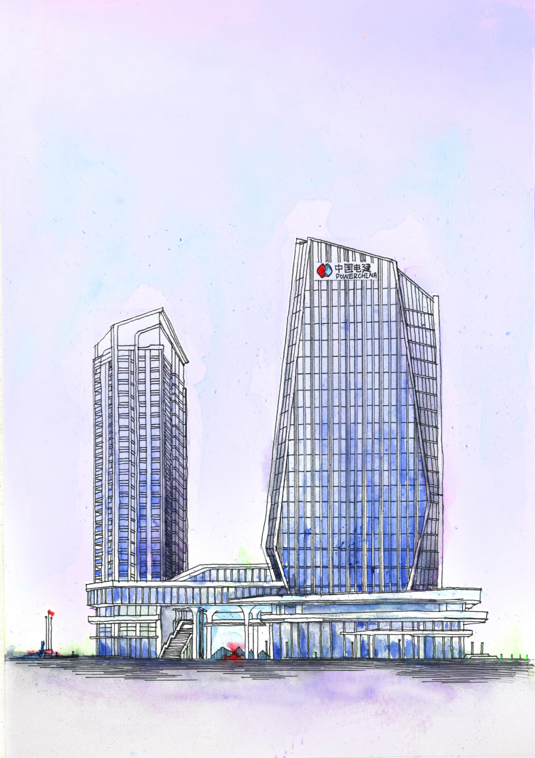新林春雨足 青笋迸龙雏——珠海电建大厦水彩画