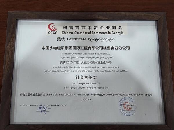 日前,在格鲁吉亚中资企业商会举办的2026年新春年会上,中国水电国际工程公司格鲁吉亚分公司被授予“2025年格鲁吉亚十大优秀中资企业”称号及“社会责任奖”。中国驻格鲁吉亚大使馆商务参赞赵秋艳出席仪式并颁奖。 格鲁吉亚是水电十六局的自主经营国别,其国别代表及中国水电国际工程公司格鲁吉亚分公司总经理均由水电十六局派员出任。此次殊荣,是商会对水电十六局长期以来坚持合规经营、严守安全环保底线的充分认可,也是对其在属地化发展方面卓越成绩的高度嘉奖。在项目履约中,水电十六局积极推动属地采购,大幅提升本地员工雇佣比例,以实际行动践行央企社会责任,树立了中国企业的良好形象。 在项目实施过程中,水电十六局积极与所在地政府保持紧密联动,切实解决困扰当地民众的实际问题。在F0公路项目实施期间,项目部主动义务协助沿线村庄改建通行道路、新建排水沟渠,改善了村镇基础设施;2025年初,面对强暴雪天气,项目部迅速响应政府号召,全力协助开展道路除雪保通任务,有效保障了村民出行安全,赢得了当地政府和民众的高度赞誉。 |