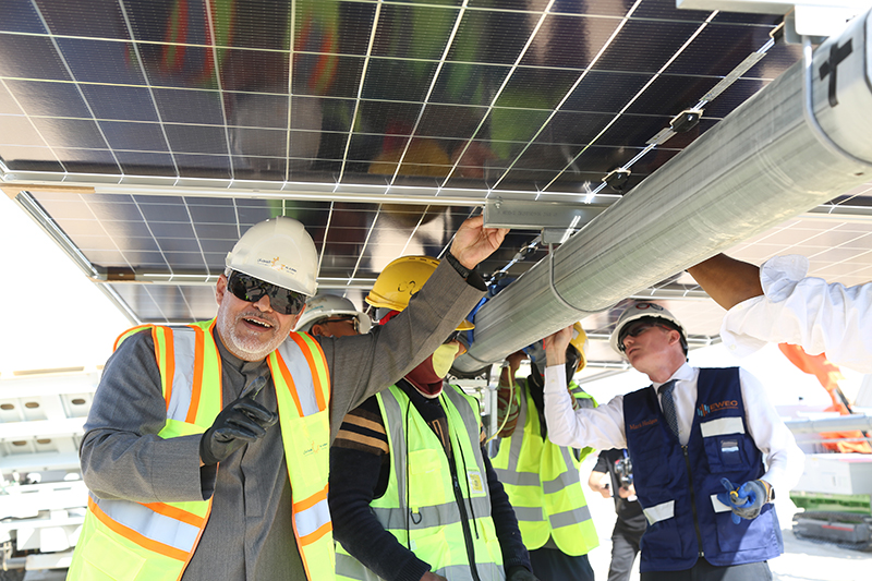 1月15日,中国电建承建的阿联酋阿布扎比PV3阿吉班1.5吉瓦光伏项目成功举行机器人安装首块光伏组件仪式,标志着项目正式进入大规模组件安装阶段,实现了中国智能建造技术在中东地区大型光伏项目建设中的首次应用。 在项目施工现场,全体代表近距离观摩了机器人安装作业。机械臂精准抓取光伏组件,稳稳地将其安置在支架之上,整个过程流畅高效,充分展现了智能建造的技术优势。在观摩结束后,全体代表在此光伏组件上郑重签名,留下这一历史性时刻的美好印记,共同预祝项目取得成功。 作为阿联酋首个应用机器人安装光伏组件的大型光伏项目,PV3项目在数字化、人工智能和智能建造领域实现了重要突破,是中国电建推动提升企业核心竞争能力、加快实现“六个转变”的生动实践。该技术的推广应用,将在未来项目建设中持续发挥示范效应,为进一步提升工程建造能力、优化施工组织、降低项目综合成本提供有力支撑。未来,中国电建将持续深化数字化、智能化技术在新能源工程建设中的应用,不断提升工程建造能力和项目履约水平,积极推动绿色低碳技术创新与国际合作,携手各方伙伴为阿联酋能源结构转型和全球可持续发展贡献中国电建力量。 |