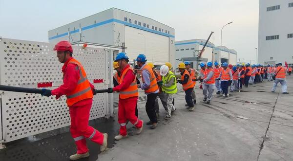 “同志们加把劲呀,还有50米哪……”,随着响亮的号子,一根动力电缆如蟒蛇般在大家手里蜿蜒滑动着,旁边的党旗迎风招展,鲜艳夺目。这是临近春节,电建核电公司广东廉江核电项目部所在的核电“大党建”联席会组织的特殊的联建活动--电气电缆敷设义务劳动。 下午17时,忙碌了一天的电建核电公司廉江项目员工已经做好了下班的准备,而“大党建”联建各单位的116名党员却在各党组织书记的带领下,浩浩荡荡高举党旗聚集到5号混凝土供应链施工区域。这次联建义务劳动的主要任务是利用业余时间,敷设约500多米直径近7公分的动力电缆至搅拌站5号线箱变,并实现设备通电。 电建核电公司参与建设的广东廉江核电一期工程建设2台百万千瓦级核电机组,单台机组额定容量为125万千瓦,采用CAP1000三代非能动压水堆核电技术,是国内首次将超大型自然通风冷却塔应用于核电项目,也是国内首个采用海水二次循环冷却的核电工程。项目建成后,将为我国核电厂址开发建设提供重要示范和借鉴,也将为国内核电发展蹚出一条新路。 在按核电流程完成安全技术交底后,各支党员队伍按照任务布置进入到各自区域,党员同志们纷纷摩拳擦掌,准备着一场硬仗,毕竟这根动缆犹如一只“黑蟒蛇”,想要“驯服它”可不容易。一开始,沉重的电缆压得人走路摇摇晃晃,加上拐弯多,走走停停的敷设并不流畅,大家都咬紧牙关坚持着,几个经验丰富的老书记一合计,分段在拐弯处留足电缆长度,并带头喊起号子,大家一起使劲前拉后送,“黑蟒蛇”逐渐变得“温顺”起来,经过一个多小时的奋战,终于顺利完成电缆敷设任务。 敷设电缆的过程虽然十分辛劳,当看到电工师傅麻利的将“黑蟒蛇”剥皮抽芯,现场设备通电运转的一瞬,每名参战党员的脸上都洋溢着驯服“黑蟒蛇”的喜悦之情。在新春佳节即将到来之际,电建核电公司项目一线的党员先锋队员们身先士卒,用实际行动展现了“劳动光荣、劳动最美”的电建人风采。