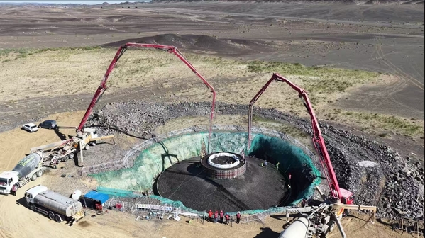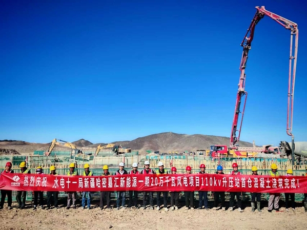 行驶在东疆无垠的戈壁上,举目眺望,天山的轮廓于云霭之间若隐若现,地面的绿草与悠闲漫步的牛羊,勾勒出一幅生动的画卷。继续向戈壁腹地深入,沿途依稀可见被风吹得倾斜的胡杨树,扭曲的躯干和凌乱的枝条仿佛在诉说“胡杨千年立风沙”的不屈和倔强。 天山东麓,劲风如歌。在风力资源富集的新疆三塘湖,在哈密嘉汇新能源一期20万千瓦风电项目,一场与风共舞的能源攻坚战已酣畅打响,一支年轻的水电十一局团队在茫茫戈壁之上谱奏驭风逐绿的生动乐章。 精准丈量,标注戈壁坐标 烈日炙烤着茫茫戈壁,热浪蒸腾。项目测量队员扛着仪器穿行在陡坡深沟之间,在松散的砂砾上留下长串脚印。 “风机机位分散各处,战线长、面积大,地形复杂,信号时断时续,给测量工作带来极大挑战。”杨徽作为一名具有30多年工作经验的“测量老手”,每天带着测量员们背负着超过五公斤的仪器,反复攀爬坡度超过30度的碎石坡面,人工架设移动基站,在荒漠中日行两万步是常有的事。 该项目的风场内包括集电线塔95座,场内主道路总长度约20.8千米。盛夏时节,现场地表温度常突破50摄氏度,强烈紫外线照射下,高温导致仪器屏幕频现报警,设备电池续航骤降,棱镜稳定性受热扰动显著增大。 “我们调整了作业时间,避开正午高温,同时采用遮阳控温措施保障设备可靠性。”杨徽介绍说。通过多次测回、交叉校验等方法抑制误差,项目测量团队终于完成124个控制点布设,施工放样点超过2300个,所有点位精度误差严格控制在±2毫米之内。各项数据成果均通过监理复核与第三方检测,为后续风机吊装、线路敷设等工序提供了可靠的基准保障。 队员张俊威擦拭着额头的汗水说:“太阳狠,戈壁硬,但测出来的数字一点儿都不能含糊。”他们用专业和汗水,为项目建设绘就第一笔精准坐标,也为后续施工奠定下坚实基础。 技术攻坚,浇筑绿色根基 “一年一场风,从春刮到冬。”这句当地俗语生动描绘了三塘湖地区的风况。长风吹过的黑戈壁只生长沙砾,罕有水迹,形成形态各异的雅丹风蚀地貌。在这种恶劣的自然环境下,20台巨型风机基础即将在此扎根。 该项目单个风机基础直径为25米,顶部直径8米,所需混凝土方量达980立方米,必须一次浇筑成型。 “这里昼夜温差常达20℃以上,混凝土浇筑与养护就像在跟老天爷抢时间。”项目经理孙乾龙说。当大体积混凝土浇筑量遇上新疆特有的“一日过四季”气候,如何完成保持混凝土恒温、一次成型是项目关注的焦点。 为保障施工进度与质量,项目组建核心技术攻坚小组,系统推进混凝土浇筑工作:首先,制定周密的施工方案,在混凝土浇筑时采用整体分层连续工艺,严格控制层厚和层间间歇时间,确保振捣到位、结合紧密。其次,针对大体积混凝土温控难题,在工地各处预埋测温点实时监控,确保内外温差,且每日降温不超过2℃。 施工现场,质量员贺振飞正在检查着保温作业情况:“保温膜必须覆盖严密,当地蒸发量大,水分过快流失会导致混凝土表面开裂。夜间还需在保温膜外加棉被后,再外附塑料膜进行全覆盖,进一步保证混凝土在适宜温度下硬化。”此刻,坑外温度已降至12摄氏度,确认过膜下混凝土仍维持在要求的硬化温度范围内,他满意地点了点头。 与此同时,项目制定精细化专项方案,力求从“面、线、点”三个维度全面提升项目履约水平。“为高质量完成基础浇筑任务,我们实施两班倒机制轮流值守现场,技术团队提供全程技术指导,安全专员按时开展全域巡查,同步做好各项数据的记录,调度员积极协调商混站运输车辆,满足连续施工要求。”项目总工李力介绍说。 2025年7月14日,随着最后一台风机机位基础浇筑完成,项目团队如期高质量完成20台风机基础浇筑的里程碑节点,为后续塔筒吊装和集电线路基础施工创造了有利条件。 匠心筑“心”,构筑绿电中枢 九月下旬的三塘湖,秋意已浓。一眼望去,高远的蓝天,云朵如絮,阳光倾斜在无垠的戈壁滩上,为这片土地镀上一层金黄。此时,项目建设中的又一关键节点——110千伏升压站首仓混凝土浇筑正在如火如荼进行中。 该升压站东西长165米,南北宽72米,分为站前区与生产区两大功能模块,主变压器、预制舱、调相机、无功补偿装置等关键设备将坐落于此。作为风电场的“心脏”,升压站承担着承担着电能汇集、升压输送的重要使命。风力发电机产生的电能,经27千米集电线路接入110千伏升压站,再以1回110千伏送出线路接入博景上湖220千伏汇集站,最后将这绿色能源输送至千家万户。 “进入十月后,气温骤降,必须牢牢把握当下的浇筑施工黄金期。”技术人员胡娇娇盯着眼前的进度计划说道。针对升压站基础预埋件及预留洞口较大较多的特点,项目技术团队持续优化施工方案和工序,在确保振捣到位的同时,进一步缩短浇筑间隙时间,提升施工质量。 机械的持续轰鸣,夹杂着耳边不时响起的风啸,交织成工程人奋进的号角。在指挥员和操作员的密切配合下,泵车展开的长臂缓缓到达指定位置,随着混凝土的精准下落,施工人员各司其职,熟练操作,质量员紧盯仪器数据,严格把控浇筑质量的各项指标。入仓、平仓、振捣等一道道工序按照预定方案井然有序地进行着。 110千伏升压站首仓混凝土浇筑的圆满完成,标志着升压站主体结构正式进入施工阶段,为后续设备安装、并网发电奠定了坚实基础。 风,从山
