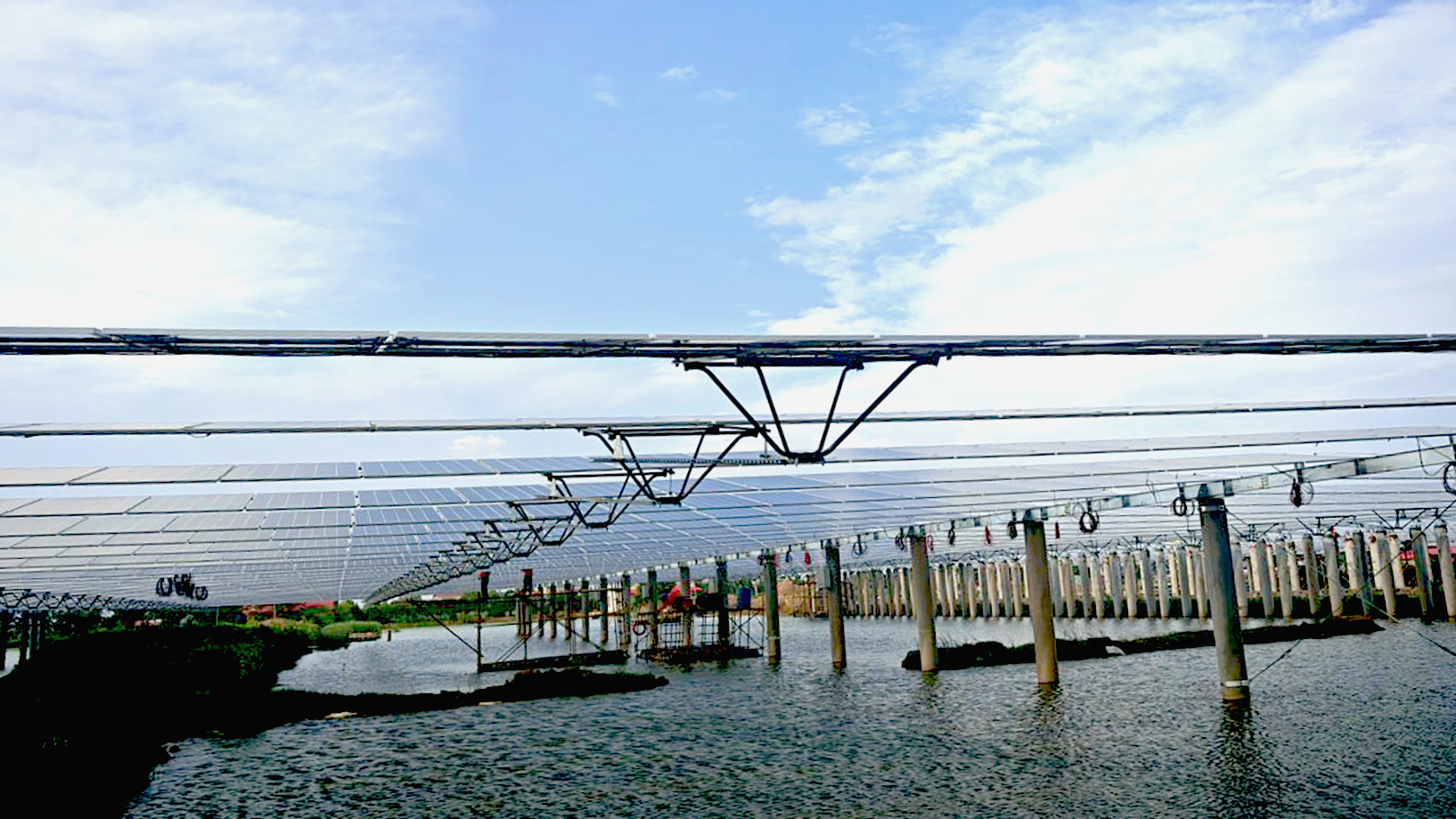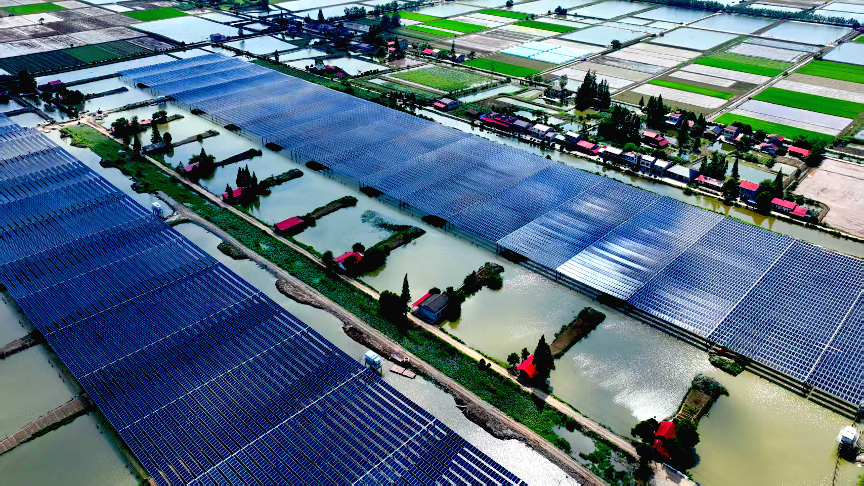 “洞庭湖西秋月辉,潇湘江北早鸿飞……”走进洞庭湖畔、澧水之滨的安乡,湘风楚韵流传千年,勾勒楚地灵秀。令人神往的佳境,连轴转换、变幻、舒缓、清新,能感受到大地的柔慈温良、感悟大自然的博大深邃,令人赞叹不已。 眼下,在安乡县陈家嘴镇6400亩鱼塘上,一幅“渔光共生”的生态画卷正徐徐铺展。深蓝色的光伏板阵列如波浪般起伏延展,与粼粼波光相映生辉……美丽画面的背后,正是江西水电大唐华银安乡陈家嘴220千伏“渔光互补”光伏项目的员工排除万难,用智慧与勤劳,用担当与执着,构建起乡村振兴特色着力点,助力美丽乡村建设。 “光伏+” 实现能源养殖双赢 “项目建设前期,我们开展多轮实地勘察,结合地质特点、‘水上发电、水下养殖’的复合产业模式等因素,整个项目采用HYPSET索结构柔性支架系统进行光伏安装……” 项目负责人谭平林介绍,因工程位于澧水湖道和松虎洪道的汇集区,淤泥层含水率高、承载力低且压缩性强,给现场道路修筑、钻孔施工、混凝土浇筑、打桩等环节带来巨大挑战。同时,光伏发电区域全部建在鱼塘上,对支架跨距和净空提出具体要求,项目部以柔性光伏支架系统破解施工难题,且支架设计不低于3米的高净空和40.6米大跨距,确保建成后鱼塘养殖、捕捞等作业不受影响。既提供稳固的结构支持,又有效降低综合建设成本,实现经济效益与安全保障的双重目标。 现场每口鱼塘标准化规划为160米长、60米宽,采用“渔光互补”模式科学划分空间,沿鱼塘一侧60%水域设置发电区域,光伏板整齐排布实现清洁能源生产;同步预留40%自然水域,保障渔业捕捞及鱼类活动、觅食与生长空间,又为“塘里养鱼、岸边养鸭”的立体养殖模式预留了基础,实现能源生产与农业养殖的双赢。 水面光伏建设不同于陆地,面对作业面狭窄、作业船机动性不足、水上作业效率不高等情况,项目部采取一系列安全、环保措施,树立公告牌,增强员工安全环保意识。作业船配备垃圾袋,个人物品、施工废料,统统装袋回收,统一清运,减少固体废弃物的污染,有效保证了现场干净整洁。 现场全体作业人员心往一处想、劲向一处使,各区域、各工序施工班组对照任务表、施工图,严格把关每项工作,精诚协作。工程施工现场陆地上机械轰鸣、工人穿梭,水面上光伏板阵列如鳞甲渐次铺开,有序推进工程建设。6月27日,项目A地块首批38兆瓦光伏发电单元,实现首并发电目标。 “破难点” 凝心蓄力保进度 “整个项目占地约为6400亩,规划总装机容量220兆瓦,共安装315840双面组件,新建一座220千伏升压站,采用分块发电、集中并网方案并入电网……”项目部总工王悦介绍,项目确立建设目标后,项目部破解施工难题,凝心、蓄力推动施工进度。同时,根据天气、材料、机械、人工等动态变化,及时优化施工策略。 从项目桩基施工、支架安装,到组件安装,再到电气安装、电缆敷设,现场300余名作业人员,克服地质条件差、水域施工难度大、设备运输不便等挑战,将一根根混凝土管桩打入水中,仔细安装好每一个支架、每一块光伏面板、拧紧每一颗螺丝,敷设好每一条电缆。项目管理人员,时刻驻守现场,盯牢每一个工作面、作业点,确保项目稳步有序推进。 “项目处于低洼积水区域交错分布,场内道路狭窄交错,重型机械难以通行。为此,事先开展周密的运输策划和场地规划工作,以应对复杂的施工环境……”项目生产经理万家敏告诉笔者,现场多为鱼塘地貌,施工现场仅有一条通行道路,路面仅4米宽,需兼顾混凝土、柔性支架、组件等运输车辆,还要满足吊车、打桩机等大型机械通行。 现场克服地质条件差、水域施工难度大、设备运输不便等挑战,提前策划各个作业面的工作,计算施工最短时间、车辆进出最佳路线,有效解决运输交通难题。 “数据是最直观的反映,通过跟踪分析,能及时发现问题、解决问题,能优化施工方案,提高施工效率……”项目工程管理专职刘奎麟指着电子文档中的各种数据介绍,项目部建立物资、设备需求清单、到货跟踪表,能实时掌握光伏设备及物资生产、运输及使用等情况,找出存在的问题,并提出改进措施。 眼下,波光粼粼水面上,成片的光伏板与天相接,与鱼塘交相辉映。作业人员来回穿梭,现场桩基施工及支架、组件、逆变器、箱变安装,每一道工序都凝聚着他们的心血,为工程建设向里程碑目标推进注入不竭动力。 “渔光鸭” 乡村振兴新样本 项目建设之初,工程结合现场实际情况、项目特色与地域产业需求,确定以“水上发电、水下养殖”复合产业模式,充分利用土地资源,全力打造集光伏发电、渔业养殖、乡村景观等于一体清洁能源发展的“新样本”。 柔性光伏支架坡度设计暗藏玄机,以10度的倾角可以最大化地捕获阳光,不低于3米的高净空和40.6米大跨距的支架空间,既确保了发电效率,更为水生生物创造了理想的生存环境。夏季光伏阵列能减少水面蒸发量,水温比开放水域降低3至5摄氏度,冬季又能保持水温,这种“温度缓冲效应”让鱼塘变成了一个天然的恒温箱,为鱼、虾提供更好的生长环境。这种设计真正实现水域空间全方位立体利用,达到1+1>2的效果。 为高效完成项目履约,项目部从抗台风、防腐蚀、支架基础、阵列排布、最佳倾角等方面均进行了充分考虑和设计创新,整个项目对当地改善能源结构、保障电力安全供应、保护环境、