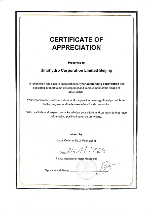 当地时间11月24日,由水电七局承建的北马其顿KO高速公路项目部收到来自沿线梅谢什塔社区的感谢信。信中,社区居民以真挚语言,点赞中国建设者:“以精湛技术筑就民生通途,用责任担当点亮发展希望”,为项目实现部分路段通车致以崇高敬意。 这封由梅谢什塔社区全体居民署名的感谢信写道:“道路改变了我们的生活!平坦的道路让我们看到了生活的新可能。”信中细数了这条新建道路为社区带来的切实改变——不仅终结了以往出行绕远路、运输遇梗阻的困境,更串联起沿线多个村镇,为当地发展注入持久动力。 该路段是区域交通网络关键节点,项目建设面临地形复杂、施工环境严苛等多重挑战。项目团队秉持“高标准、高效率、高品质”理念,将精细化管理贯穿工程全生命周期,通过科学统筹施工方案、优化技术工艺等举措,提前完成建设任务。道路全线采用双向四车道标准,配套完善的交通标识、照明设施及人行道系统,打造出一条兼具安全性、舒适性、便捷性的优质交通干线。 梅谢什塔社区此前仅依赖一条狭窄破旧的乡村道路,每逢雨季泥泞难行,居民通勤与农产品运输严重受阻,成为制约发展的“拦路虎”。新道路通车后,社区出行时间大幅缩短,农产品运输效率显著提升,旅游业、农业等产业迎来发展新机遇。社区负责人表示:“中国建设者不仅带来了先进技术,更带来了真诚友谊。” |