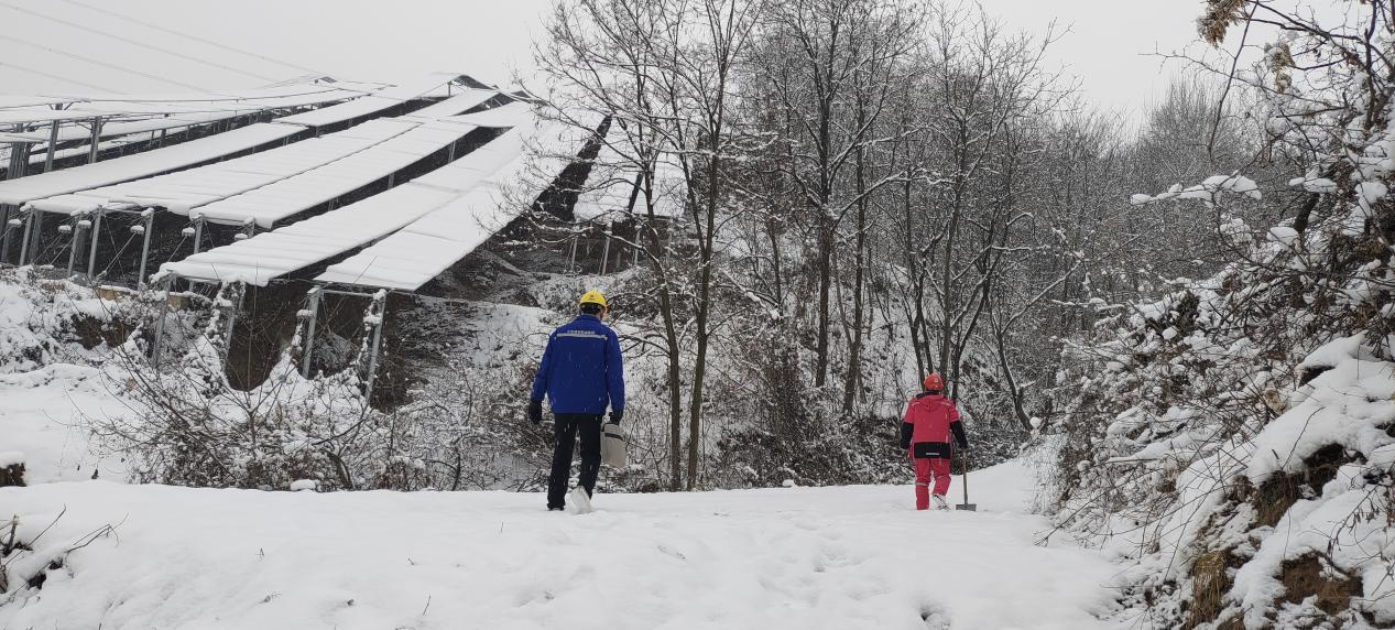 “北国风光,千里冰封,万里雪飘。”2026年元旦佳节,正当千家万户沉浸在辞旧迎新的喜悦中时,陕西宝鸡遭遇强降雪天气,暴雪裹挟着寒风席卷而来。 电建新能源公司陕西宝鸡运维中心光伏场区积雪深度达10厘米以上,部分路段积雪过膝,通往光伏场区的道路被皑皑白雪完全封堵,后台监控发现17#箱变1#逆变器的通讯信号时断时续,山上光伏设备运行状况成了悬在运维人员心头的“未知数”。为摸清设备实情、守护电站安全稳定运行,保障节日期间电力供应“不断档”,宁夏分公司陕西宝鸡运维中心的运维人员们以雪为令、向险而行,毅然选择徒步上山,用脚步冲破雪阻,在风雪中筑起坚不可摧的能源保供屏障。 “脚下注意暗冰,跟着我的脚印走!”山路上,积雪掩盖了原本的巡检步道,每一步都充满未知与风险。队员们相互搀扶、彼此提醒,手中的铁锹不断试探前方路况,厚重的防寒服很快被汗水浸湿,脸颊被寒风刮得通红,但没有人停下脚步。经过近2个小时的徒步跋涉,他们终于抵达光伏场区17#箱变1#逆变器,来不及搓热冻僵的双手,便立刻投入工作。工作人员迅速拿出检测仪器排查通讯信号时断时续的故障根源,小心翼翼清理设备表面及周边的积雪与结冰,紧固松动的接线端子,检查系统运行状态,逐项核对设备参数与后台数据,精准完成逆变器消缺作业,全力保障光伏设备安全稳定运行。当夜幕降临,城市灯火璀璨、万家团圆之时,运维中心的监控室内依然灯火通明,值班人员紧盯屏幕上的各项数据,实时监测设备运行状态,确保突发情况能够第一时间响应处置。 “北风卷地白草折,胡天八月即飞雪”,这场跨年暴雪考验着设备的极限,更彰显着电建人的担当。运维人员们以“雪不停、人不歇”的坚守,用脚步丈量初心,用实干诠释责任,在千里冰封的光伏场站书写着能源保供的动人篇章。他们的身影,如同雪海中挺立的铁塔,守护着每一度清洁电力的平稳输出,让这个元旦假期因坚守而更加温暖。 |