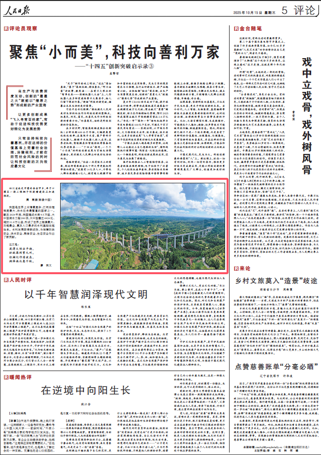 近日,《人民日报》第五版报道了水电十四局承建的四川亭子口灌区一期工程桐子坝渡槽建设情况。 报道写到,我国是世界上水情最复杂、江河治理难度最大、治水任务最繁重的国家之一。截至2024年底,我国建成水库9.5万座、大中型调水工程200项,大中型灌区6924处、堤防31.8万公里,形成了世界上规模最大、功能最全、惠及人口最多的水利基础设施体系。水利发展取得新成效,为保障防洪安全、供水安全、粮食安全、生态安全作出了新贡献。 据了解,作为亭子口灌区一期工程第八流量段的“关键节点”,桐子坝渡槽的建设规模与技术难度均处于项目前列。工程采用预应力简支U型结构,设计流量达51.25立方米/秒,单跨长度42米,总计45跨的建设规模让渡槽全长达到1890米,其中槽墩墩身最大架空高度更是突破90米,相当于30层楼高,施工精度与安全管控要求极高。 当前,项目已全面进入槽墩与槽身上部结构施工的“攻坚期”。 报道链接:http://paper.people.com.cn/rmrb/pc/content/202510/15/content_30109580.html |