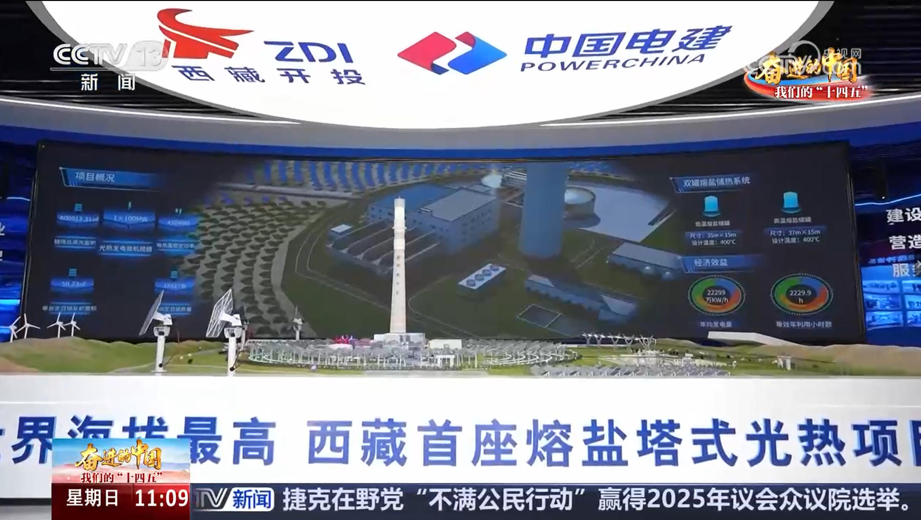 10月5日,中央电视台新闻频道播出的《奋进的中国·我们的“十四五”》栏目,专题报道了西北院与山东电建一公司联合体总承包的西藏开投安多光热一体化项目,展现了该项目建设情况及建成后为点亮西藏高原山区千家万户、助力西藏高质量发展作出的贡献。 西藏安多100兆瓦光热一体化项目中的光热项目地处海拔4645米至4657米的唐古拉高山区,不仅创下了世界光热发电项目的海拔新纪录,更为全球高寒高海拔地区大规模清洁能源开发提供了宝贵经验和可复制的“中国方案”。 国庆节前夕,项目建设取得重大突破——核心建筑吸热塔主体结构浇筑成功达到100米标高。节日期间,山东电建一公司西藏安多光热项目团队坚守岗位,克服高海拔低温缺氧环境,现场施工“不打烊”,吸热塔已浇筑至120米高度,为实现主体结构全面封顶奠定了坚实基础,目前项目建设已初具规模。 据悉,项目计划在2026年10月并网发电,年均发电量可达2.6亿千瓦时,为安多县及其周边地区带来稳定、绿色的电能,点亮高原山区,有效解决高原电网“弃风弃光”和冬季限电问题,为西藏电网注入强劲的绿色动能。 报道链接:https://tv.cctv.com/2025/10/05/VIDEgISxdT0yeiDjmNOAv7Xf251005.shtml 10月飘雪——西藏开投安多100兆瓦光热一体化项目已初具规模 |