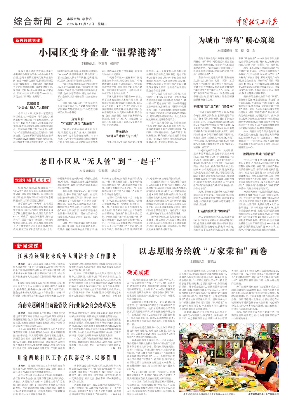 近日,由中国电建地产公司主导改造运营的华中小龟山金融文化公园亮相《中国社会工作报》,该报道聚焦园区通过党建引领促进产业集聚发展的创新路径。 报道称,该园区开园后迅速建立党组织联建共建机制,通过党建整合政府、企业、社会三方资源,成功引入培育80余家企业,入驻率常年超过90%。园区依托“3+32+N”共创共建模式,带动园区32家入驻企业及多名青年代表,为街道、社区、园区、企业的协同发展建言献策。园区举办银企对接、企业沙龙及“悦跑春风里”等特色文体活动,并组织企业“走出去”赴先进地区交流学习,有效以党建引领资源集聚与服务优化,实现了企业“留得住、发展好”的目标。 华中小龟山金融文化公园是湖北省第五批现代服务业集聚区,其前身为上世纪70年代的老工业基地。园区通过实施空间重构、产业重构与服务升级三大策略,成功推动区域从闲置的工业厂区转型为聚合80余家企业的“产业名园”,构建起完整的金融文化产业生态链。 报道链接:https://www.zyshgzb.gov.cn/459402/459416/459729/461112/461344/index.html |