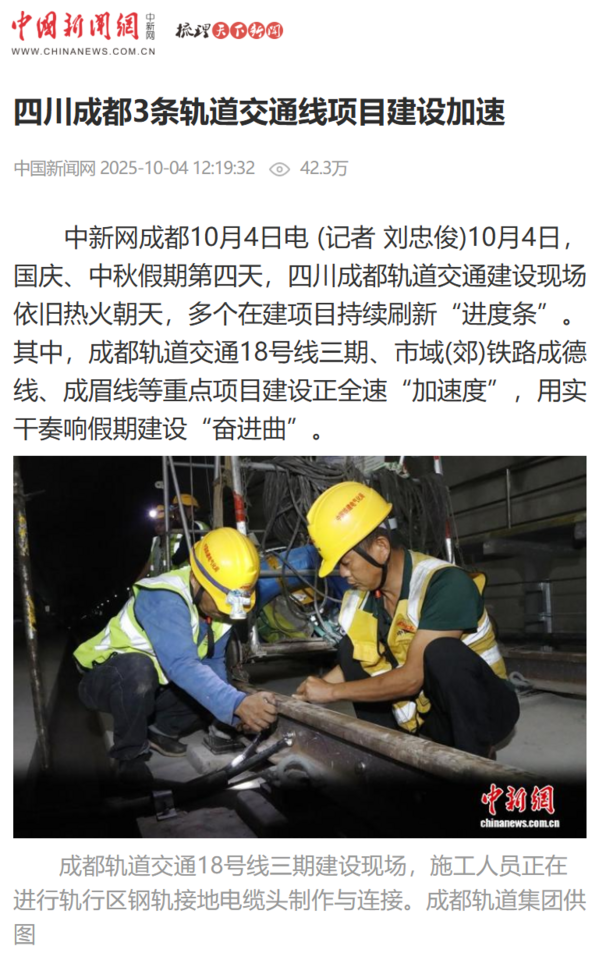 中新网成都10月4日电 (记者 刘忠俊)10月4日,国庆、中秋假期第四天,四川成都轨道交通建设现场依旧热火朝天,多个在建项目持续刷新“进度条”。其中,成都轨道交通18号线三期、市域(郊)铁路成德线、成眉线等重点项目建设正全速“加速度”,用实干奏响假期建设“奋进曲”。 走进成都轨道交通18号线三期省体育馆站,工人们正细致调整铝板吊顶的接缝,确保装饰效果精准达标;轨行区内,施工人员沿着轨道旁精准定位、打孔,为后续设备安装筑牢基础。“假期正是抢抓工程进度的黄金期,我们全线5个工区、14个工点全部正常施工,600余名作业人员与150余名管理人员全员在岗,全力以赴推进项目建设。”现场施工负责人池进波介绍道。 目前,轨道交通18号线三期已有4座车站完成主体结构封顶,其中3座车站已顺利进入机电安装阶段;全线盾构累计掘进里程占总量的93.1%,项目建设稳步推进。作为成都南北向的轨道交通快线,该线路建成后将高效串联成都站、成都南站与天府国际机场,成为中心城区连接空港枢纽的重要交通纽带,进一步提升城市交通通勤效率。 视线转向成德线凤台三路站施工现场,车站主体结构已施工至最后两块顶板,施工人员正紧张进行最后阶段的支模与钢筋绑扎作业。为全力冲刺凤台三路站节后封顶目标,假期期间120余名建设者坚守岗位,抢工期、赶进度。“目前车站主体结构已完成98%,混凝土浇筑的各项准备工作已全部就绪,预计10月上旬即可实现车站封顶。”现场施工负责人覃君表示。 从成德线整体建设进度来看,目前已有8座车站完成主体结构封顶,其中1座车站附属结构已施工完毕,即将进入机电安装与装饰装修阶段;全线盾构累计掘进占总量的65%,关键工程节点也取得突破——鸭子河大桥主跨已实现合龙,石亭江大桥已完成全桥合龙,6条单线隧道已顺利贯通,为线路后续铺轨等工作创造了有利条件。 在市域(郊)铁路成眉线,秦皇寺站至官塘站盾构区间右线隧道深处,一节节轨排正平稳铺设、不断向前延伸,工人们专注进行钢筋绑扎作业,确保每一道工序精准到位。截至目前,该区间已完成1公里的轨道铺设,为后续机电安装、装修等工程的推进奠定了坚实基础。“轨道铺设精度要求极高,每一根钢筋的间距、每一颗螺栓的扭矩,都必须严格按照标准执行,不能有丝毫偏差。”现场检查工作人员蒋力说,看着轨道一米米往前延伸,想到线路未来能方便群众出行,心里就充满成就感。 截至当前,成眉线全线9座车站已全部完成主体结构封顶;全线盾构累计掘进占总量的93%,眉山段盾构区间已实现全部洞通;铺轨作业与机电装修作业已陆续进场施工,项目整体朝着通车目标稳步迈进。 链接:https://m.chinanews.com/wap/detail/zw/sh/2025/10-04/10493832.shtml |