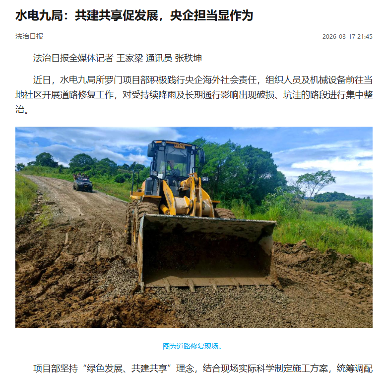 《法治日报》丨水电九局:共建共享促发展,央企担当显作为