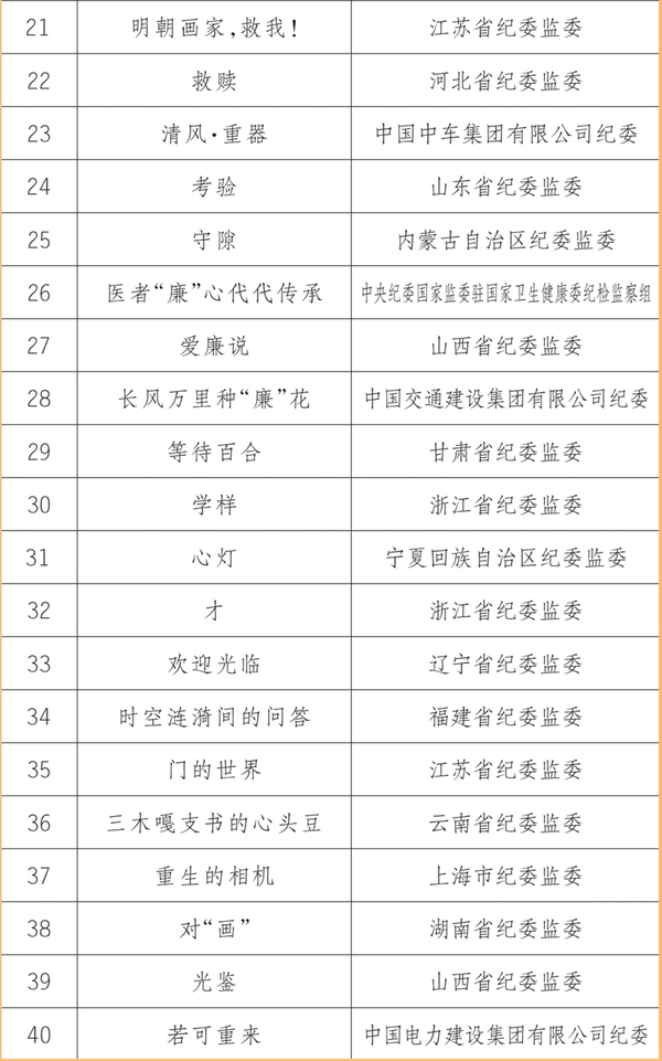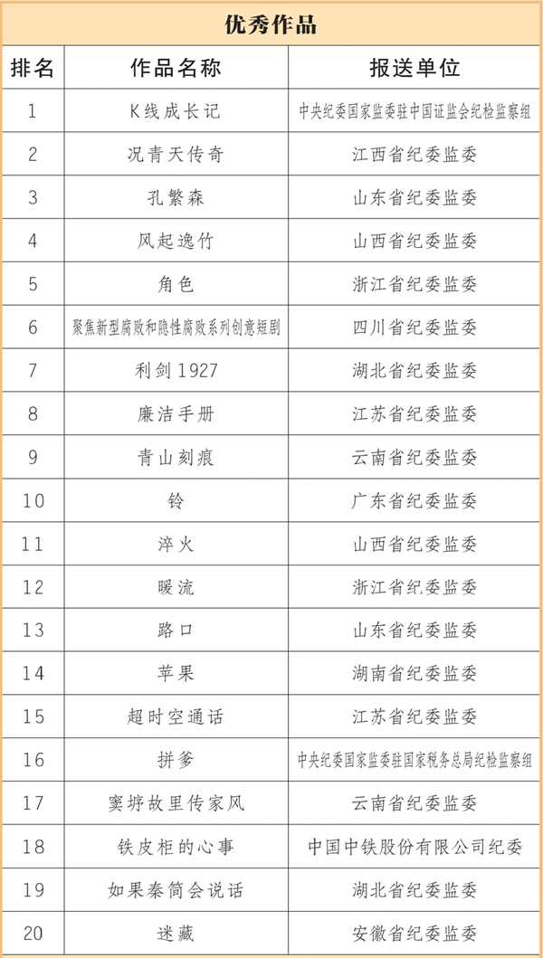 中央纪委国家监委网站讯 近日,由中央纪委国家监委宣传部、中央宣传部文艺局、中央网信办网络传播局联合主办,人民网承办的新时代廉洁文化微短剧征集展播活动,公布了20部优秀作品、40部入围作品(名单附后)。浙江省纪委监委、山西省纪委监委、中央纪委国家监委驻中国证监会纪检监察组等10家单位获评优秀组织单位。 本次活动是全国纪检监察系统首次以微短剧的形式集中展播新时代廉洁文化作品。自2025年3月启动以来,各地各单位积极组织、精心创作、踊跃报送,活动共收到619部微短剧作品,涵盖了理论阐释、正风肃纪反腐、廉洁典型宣传、纪法教育、中华优秀传统文化、革命文化、社会主义先进文化、家风家教等方面内容。经过多轮遴选,选出了一批兼具政治性、思想性与艺术性的精品。 据介绍,优秀作品及部分入围作品将在人民网、中央纪委国家监委网站集中展播,并在网络媒体平台、微短剧平台等上线播出。 主办单位负责同志表示,微短剧是一种创作空间大、信息密度高、传播效果好的新型作品形式,接受度和影响力逐渐加大,此次活动是为适应媒体格局和传播方式变化而作出的积极探索,是在全社会唱响正风肃纪反腐主旋律、弘扬清正廉洁正能量的有益实践,也是丰富廉洁文化优质内容供给、提升传播力吸引力感染力的具体举措,对于进一步塑造清正廉洁的思想品格、廉洁奉公的政德修养、廉洁自律的道德操守、崇廉拒腐的社会风尚具有重要意义。 |