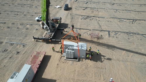 7月7日上午,水电十六局承建的新疆华电于田40万千瓦光伏项目二标段项目首台箱式变压器顺利吊装。作为光伏电站的重要组成部分,箱式变压器的顺利吊装为后续其他箱式变压器吊装提供了技术指导和安全保证经验,为电气设备安装和调试工作奠定有力基础,和8月具备并网条件提供可靠保障。 新疆华电于田40万千瓦光伏项目二标段项目共配套箱式变压器62台,配套62座基础混凝土平台。首台箱式变压器的成功吊装,离不开机电公司项目团队前期的精心策划和充分准备,在施工前,技术人员对吊装方案进行了反复论证和优化,对现场施工条件进行了详细勘察,并对施工人员进行了严格的技术交底和安全培训。随着吊车的精准操作,箱式变压器在空中平稳移动,最终准确无误地落入预定基础位置,整个吊装过程紧张有序,每一个环节都严格按照施工方案进行,确保了施工的安全和质量。 新疆华电于田40万千瓦光伏项目二标段项目为新疆维吾尔自治区2023年第二批市场化并网新能源项目,位于新疆和田地区于田县境内,项目中心点位于于田县中心东向约70km塔克拉玛干沙漠区地貌段,占地面积约4744亩,是水电十六局建设的首个沙漠地带光伏项目,装机容量为200MW,共配套箱式变压器62台。选用575Wp双面双玻单晶硅组件,共计安装电池组件390000块,采用组串式逆变器发电、集中并网方案。 项目建成后,年发电量约为2.4亿度,与相同发电量的火电厂相比,每年可为电网节约标煤约8.2万吨,相应可减少多种大气污染物的排放,环境效益显著。 |