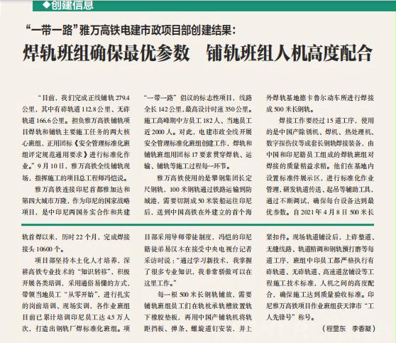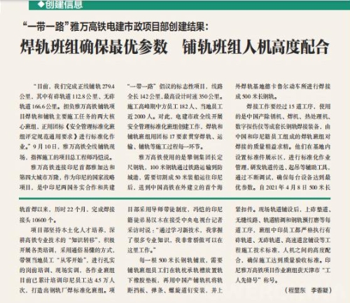 日前,电建市政公司印尼雅万高铁项目铺轨作业班组荣登中国安全生产协会指导的国家级刊物《班组天地》。 雅万高铁连接印尼首都雅加达和万隆,是印尼国家战略项目,也是中印尼两国务实合作和共建“一带一路”的标志性工程。2023年项目全线开展安全管理标准化班组创建工作,涵盖焊轨、运输、铺轨等设备的科学使用与精心维保。同时,优化施工组织设计,强化安全质量技术交底培训,施工中严格把控,以防范风险、消除隐患、确保安全为团队管理核心目标。 电建市政公司自2022年开展安全管理标准化班组创建活动以来,国内9个班组参加中国安全生产协会(以下简称:中安协)组织的全国评选,5个班组获得“安全管理标准化示范班组”。2023年,海外各在建项目积极参与。此次雅万高铁项目作业班组荣登杂志封面,彰显了市政公司标准化班组建设成果,激励全体员工积极投身建设工作,推动公司国内外项目向更高目标迈进,提升整体竞争力和影响力。 |