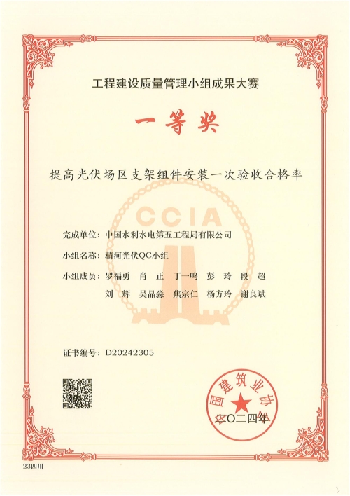 日前,中国建筑业协会颁发2024年度工程建设质量管理小组活动成果大赛证书,水电五局精河光伏项目一项QC成果《提高光伏场区支架组件安装一次验收合格率》荣获一等奖。 QC小组成员以光伏场区支架组件一次验收合格率由90.2%提高至95%为目标,深入现场调查分析,并对质量问题进行统计,找到了“支架倾斜角度偏差大”的课题症结。从“人、机、料、法、环、测”六个方面找到8条末端原因,逐条分析确定“安装定位方式错误”、“未及时校核”两个要因。QC小组召开专题会议,通过头脑风暴法按照“5W1H”原则提出了对策,对“安装定位方式错误”提出了制定最优安装定位方式,进行现场安装定位对策,针对“未及时校核”提出制定现场校核措施,要求现场作业人员对支架安装过程及时进行校核对策。对策实施后对现场施工情况再次检查、统计,支架组件的一次合格率达到97.3%,成功实现了课题设立目标,提升了施工效率,减少了施工人员,节约了支架安装返工费,经济社会效益显著,得到监理及业主单位一致好评。 水电五局将继续秉承创新精神,通过开展QC活动等形式,不断强化施工过程质量监控,持续激发科创人员对质量管理与创新活动的参与热情,进一步提升质量管理水平。 |